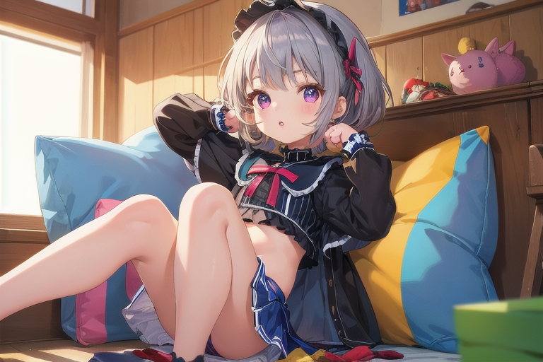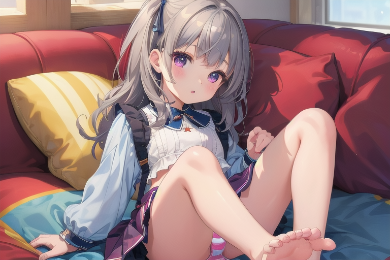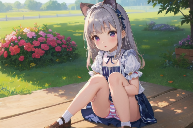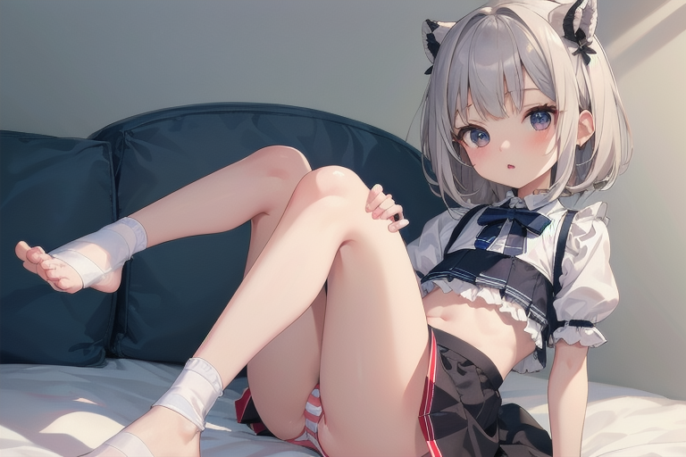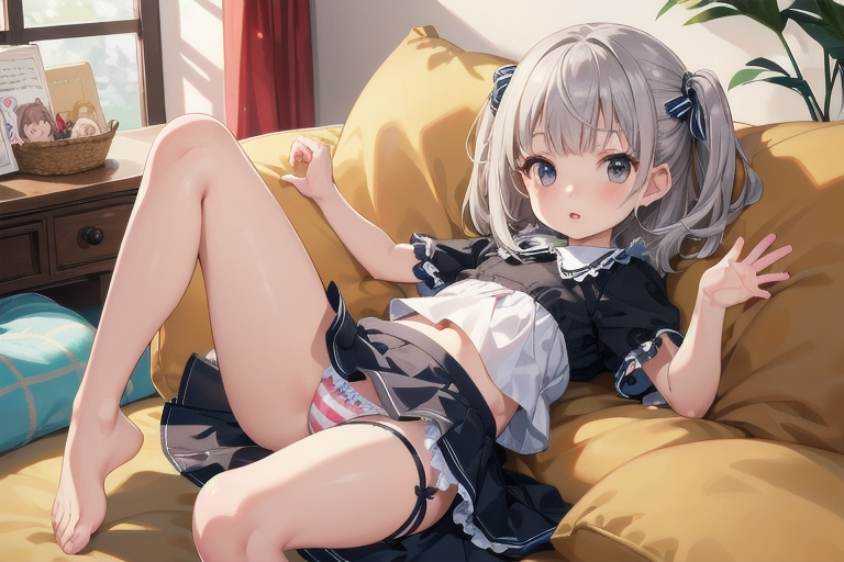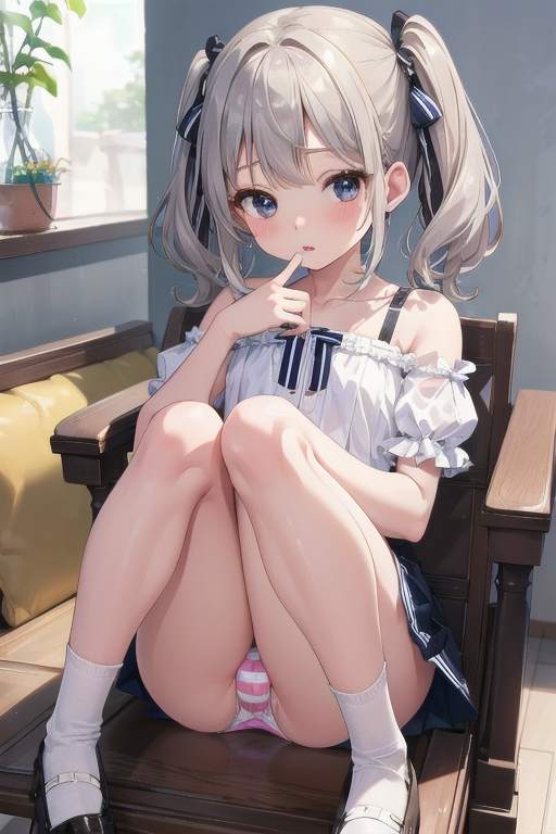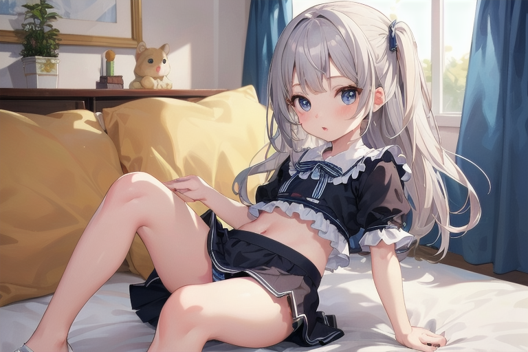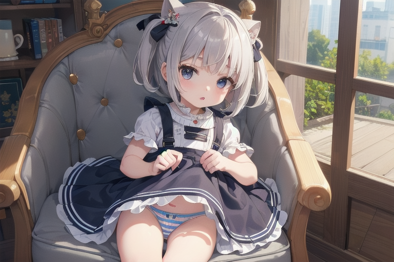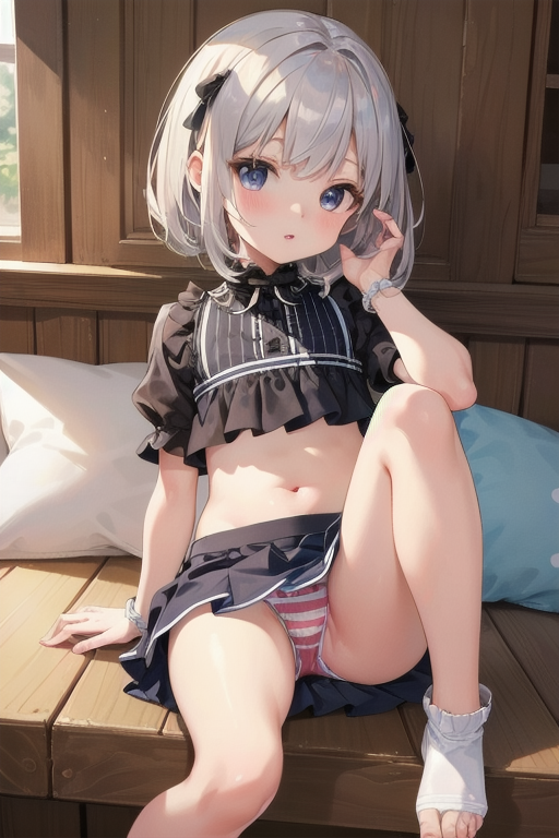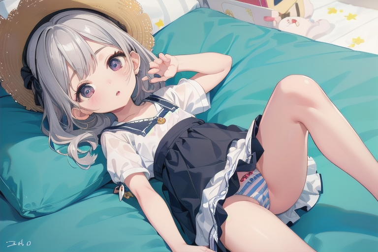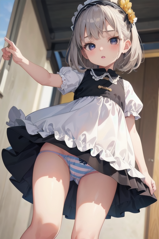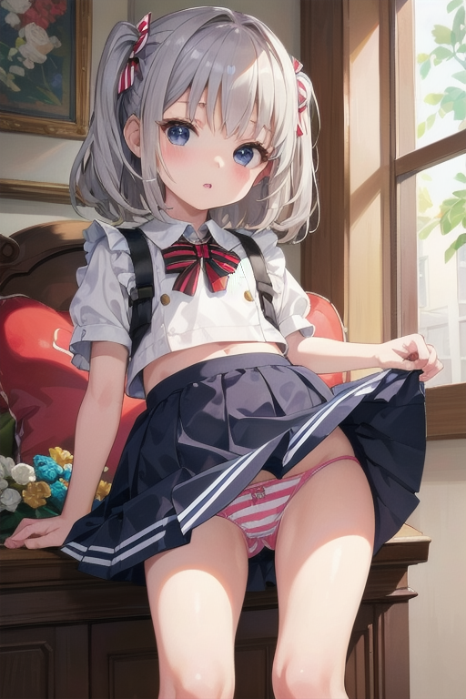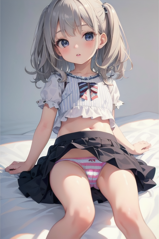 横長画像・シルバー頭髪、貧乳、パンチラ少女