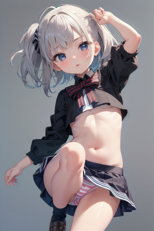 縦長画像・シルバー頭髪、貧乳、パンチラ少女