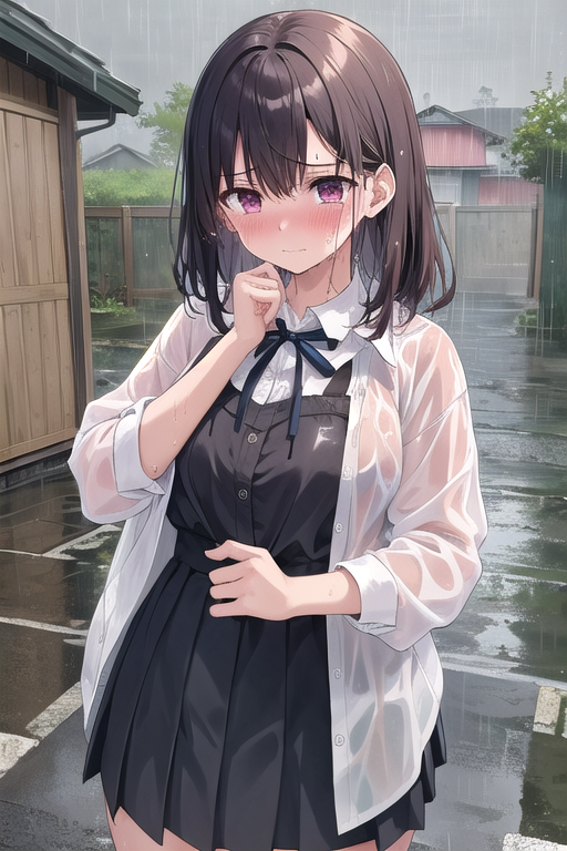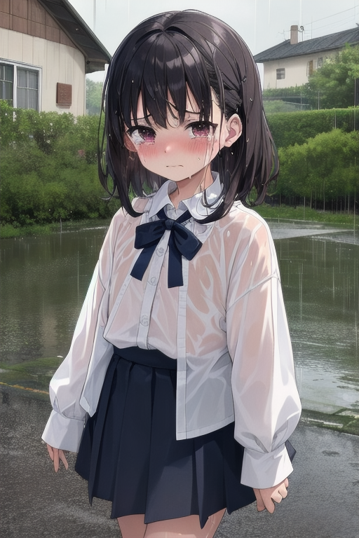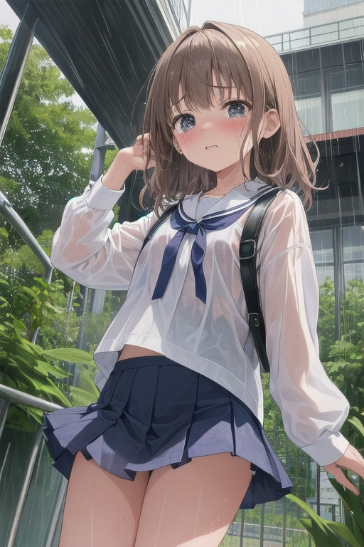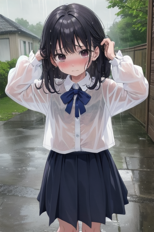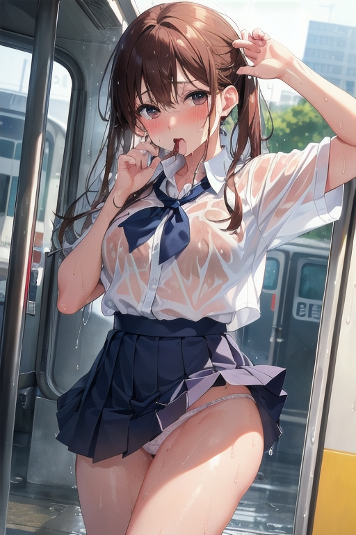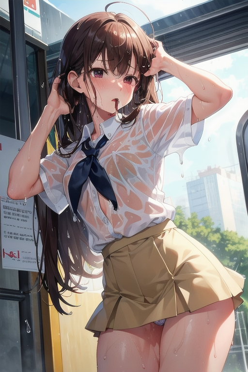 汗で学生服のシャツが濡れて恥ずかしい少女